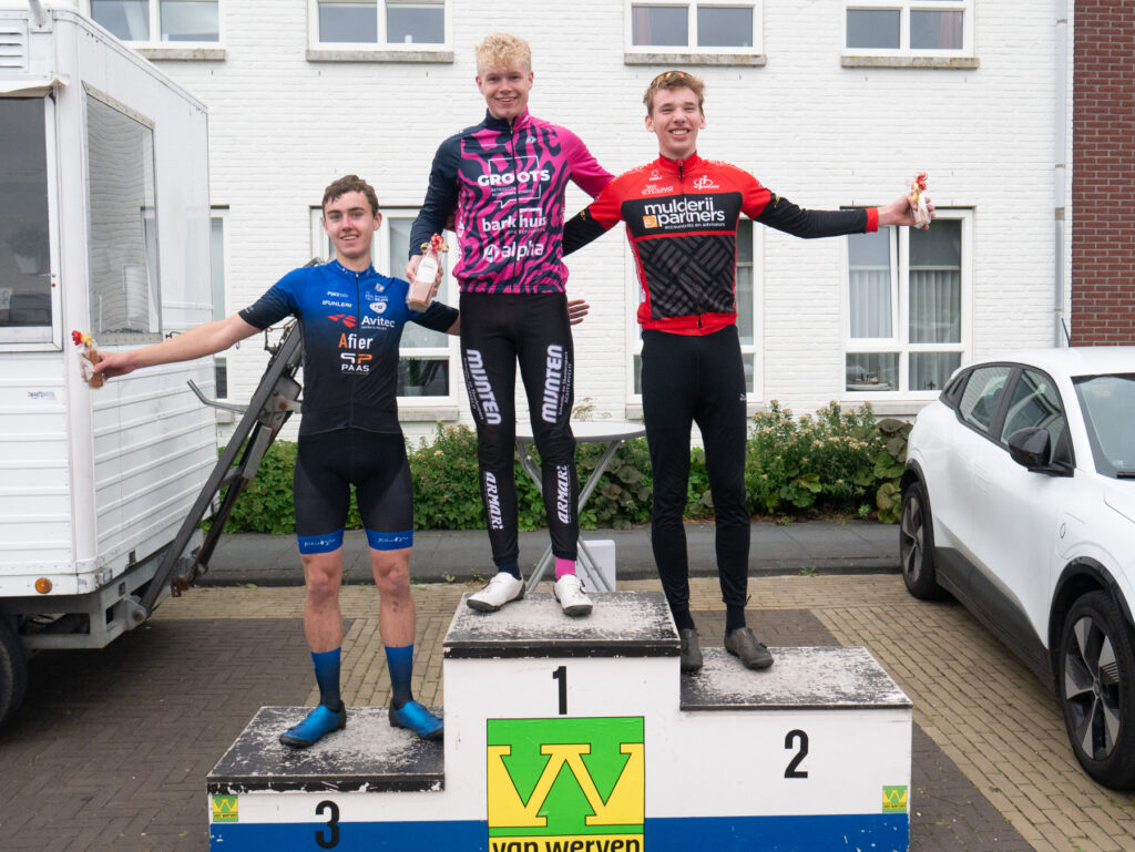 OLDEBROEK – De Multifence MTB Streetrace Oldebroek kende een schitterende finale bij de mannen 19+. Er werd snoeihard gereden, de broers van de Kruisweg Dennis en Raymond meden de strijd niet. Mede door het rijden van Raymond ontstond er een kopgroep van vijf met Jeroen van Eck uit Malden en Yaël Plas uit Apeldoorn, Dennis van de Kruisweg uit ’t Loo en Dylan Schra uit Staphorst. Halverwege de wedstrijd brak de kopgroep. En gingen drie coureurs er van door, Jeroen van Eck, Yaël Plas en Raymond van de Kruisweg. Op de finish was Jeroen van Eck de snelste, Yaël Plas tweede en Raymond van de Kruisweg derde. Dennis van de Kruisweg finishte op vier en Dylan Schra op vijf. Organisator en deelnemer Derk Jan van Putten uit ’t Harde werd achtste.