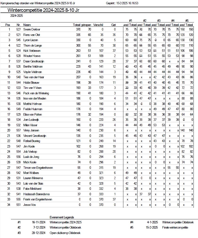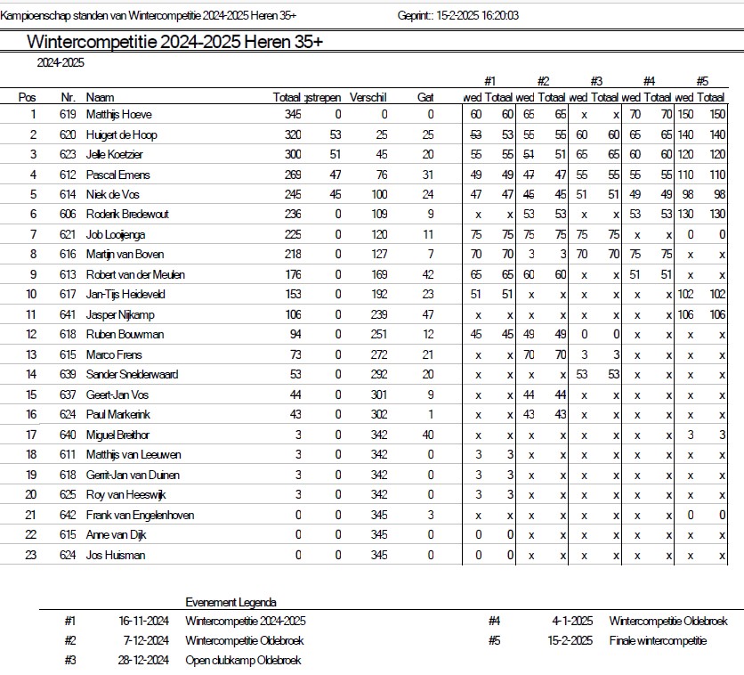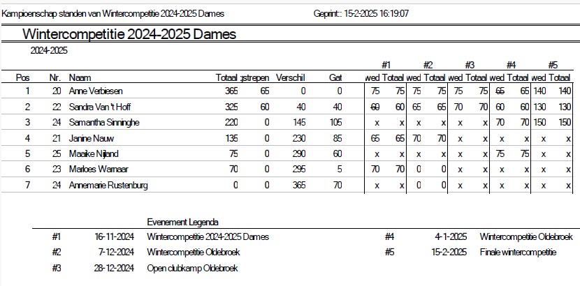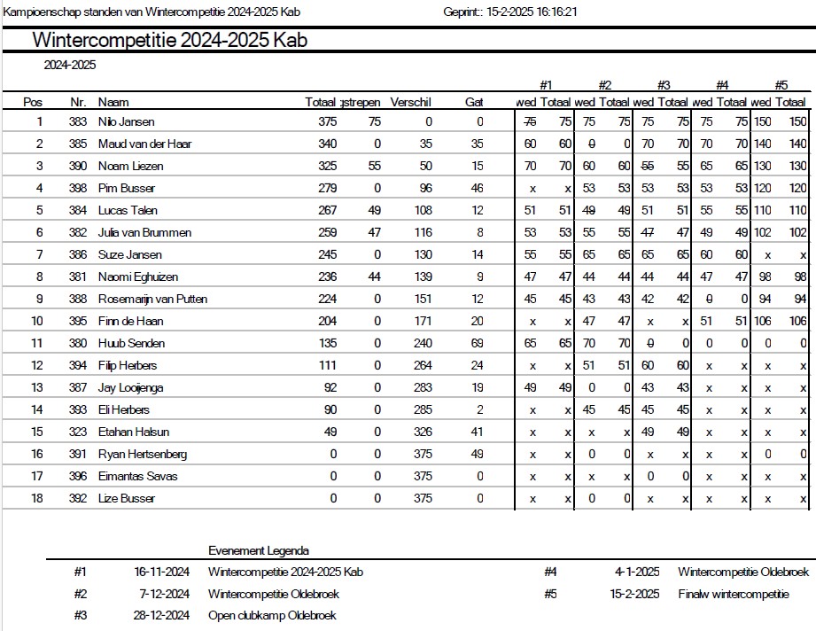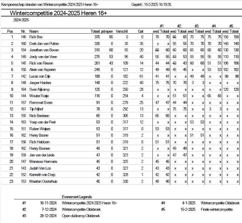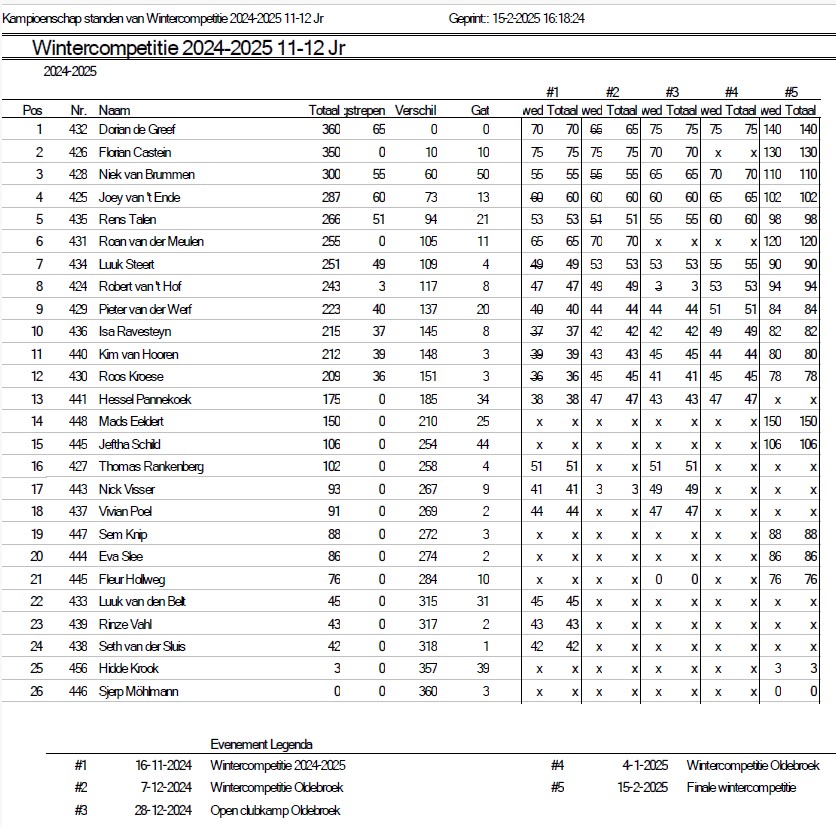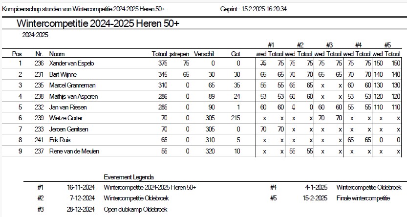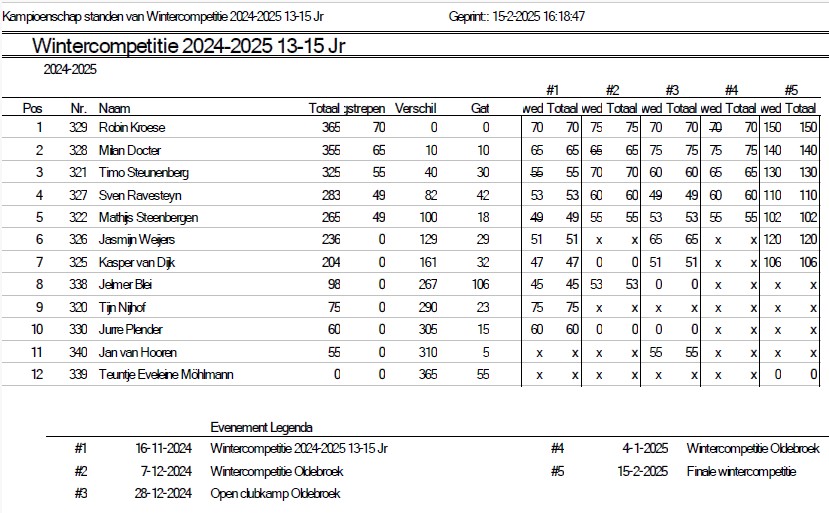 Uitslagen en eindstand Wintercompetitie
