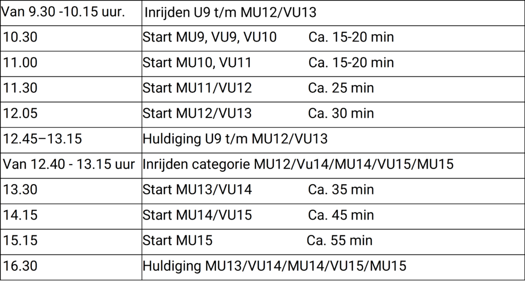 Bijschrijven is te allen tijde mogelijk tot uiterlijk 45 minuten voor de start van de betreffende leeftijdscategorie. Kosten hiervoor zijn €10 (€5 inschrijfgeld + €5 bijschrijfgeld).