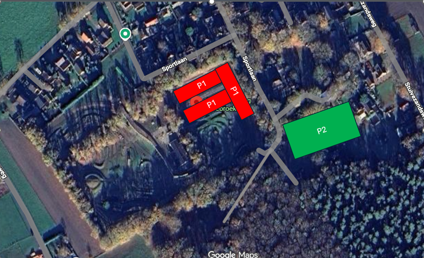 Parkeren (personenauto’s) kan op onze eigen parkeerplaats (P1). In de ochtend zal er tot 10:00 parkeerbegeleiding zijn. Volg de instructies van onze vrijwilligers op zodat we de beschikbare ruimte zo goed mogelijk kunnen gebruiken. Mocht de parkeerplaats vol zijn dan kan er in het weiland (P2) naast de baan geparkeerd worden. Campers die een plek gereserveerd hebben (en bevestigd hebben gekregen door de organisatie) kunnen parkeren op P1. Alle andere campers zullen gewoon wagen aan wagen geparkeerd moeten worden.